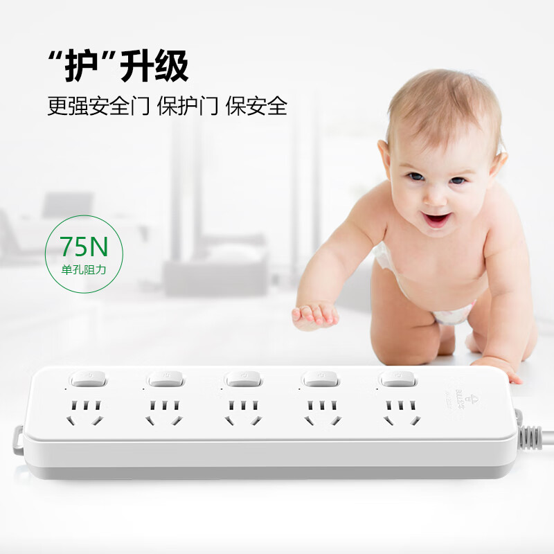 • 公牛(BULL)插座/插线板/插排/排插/接线板/拖线板 5位分控全长3米 超功率保护插座 GN-312