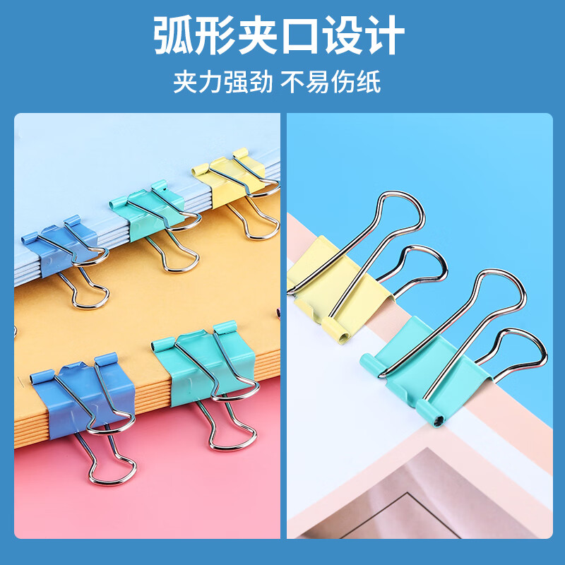 • 齐心 彩色长尾夹 票夹 金属燕尾夹 票据夹子 办公用品 4# 25mm 48只/盒 EB411